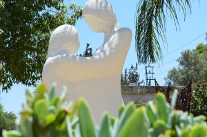 A new concrete sculpture by Joel Kass, recently added to his private sculpture garden.