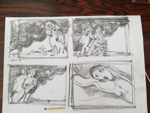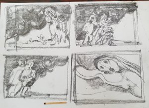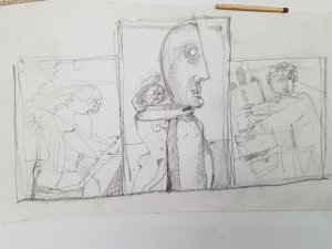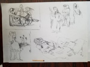 An interesting look into Joel Kass' work in progress. Have a look at some of the artist's sketches that later on became completed artworks, and others that the artist still plans to create.