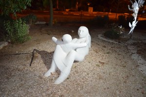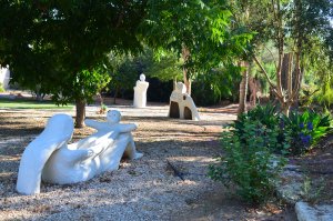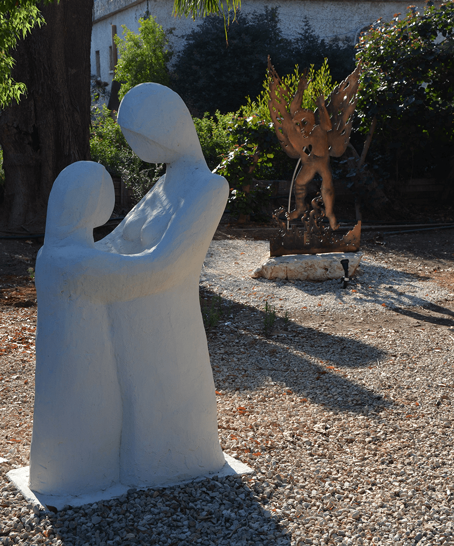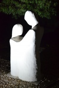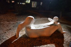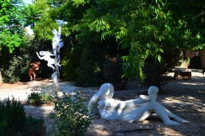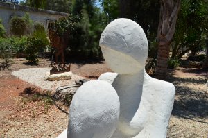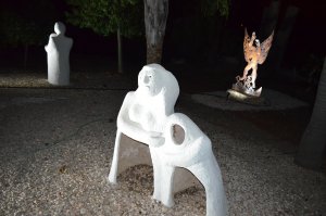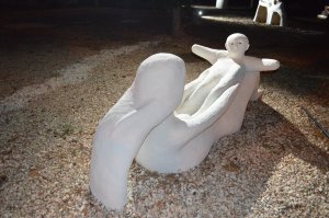 A new concrete sculpture by Joel Kass, recently added to his private sculpture garden.